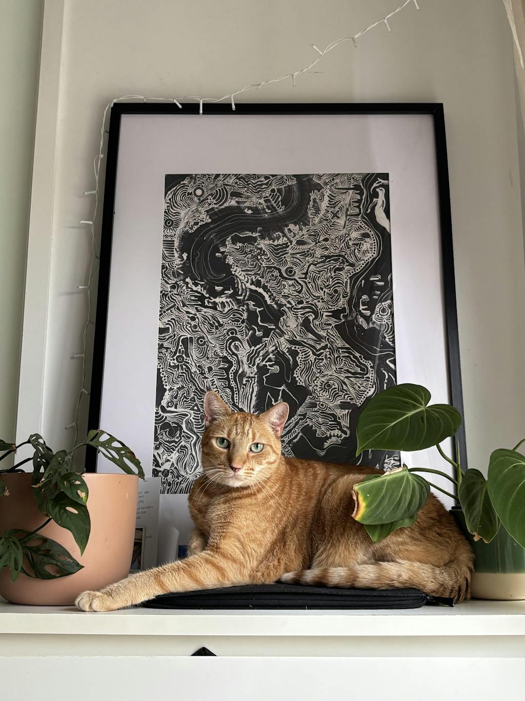 This print is absolutely stunning in person. The intricate black-and-white linework creates a mesmerizing, almost topographic effect that pulls you in the longer you look at it. I love how the abstract patterns subtly suggest faces and figures—it feels layered and interpretive without being overwhelming.
